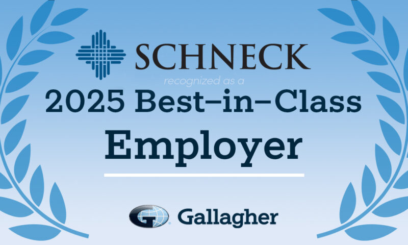 Schneck has been recognized as a Best-in-Class Employer as outlined in Gallagher's 2025 U.S. Benefits Strategy & Benchmarking Survey for implementing effective strategies and achieving measurable outcomes, such as cost reductions and enhanced employee wellbeing. This honor communicates to both current and prospective employees that the organization is deeply invested in their wellbeing and professional success.