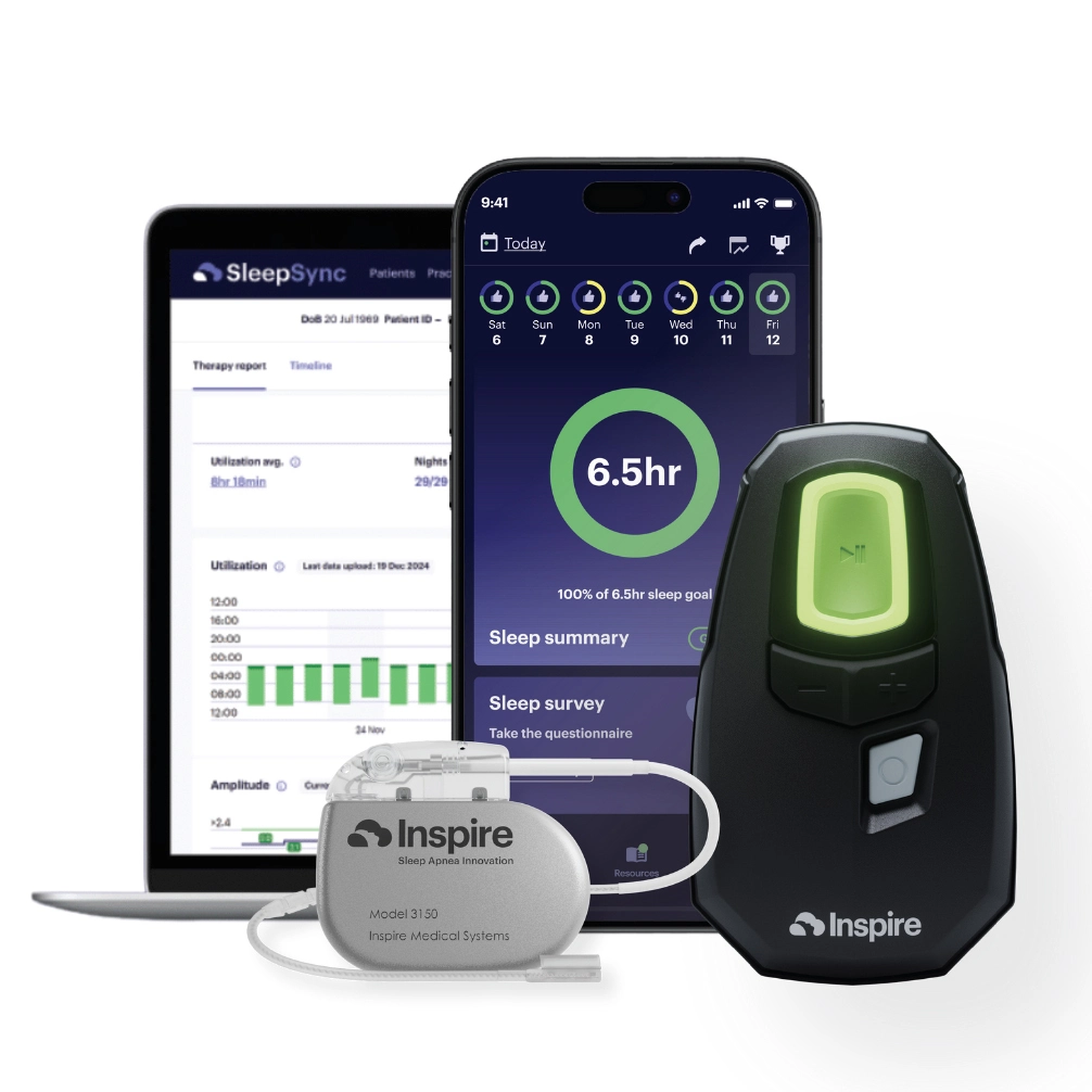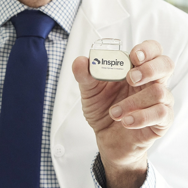 Millions of people with Obstructive Sleep Apnea (OSA) find CPAP therapy uncomfortable or difficult to maintain. Inspire offers a proven alternative—without the mask or hose. This small, FDA-approved device is implanted in the body and works by stimulating the tongue’s nerves, gently moving it forward as you breathe. Approved in 2014, more than 100,000 patients are now enjoying restful, mask-free sleep each night.